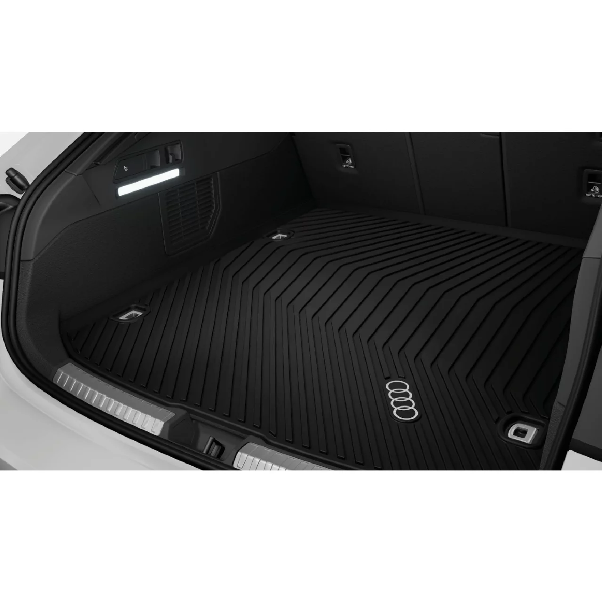 robust. Die Gepäckraumschale ist mit Audi Ringen in Kontrastfarbe versehen. Der