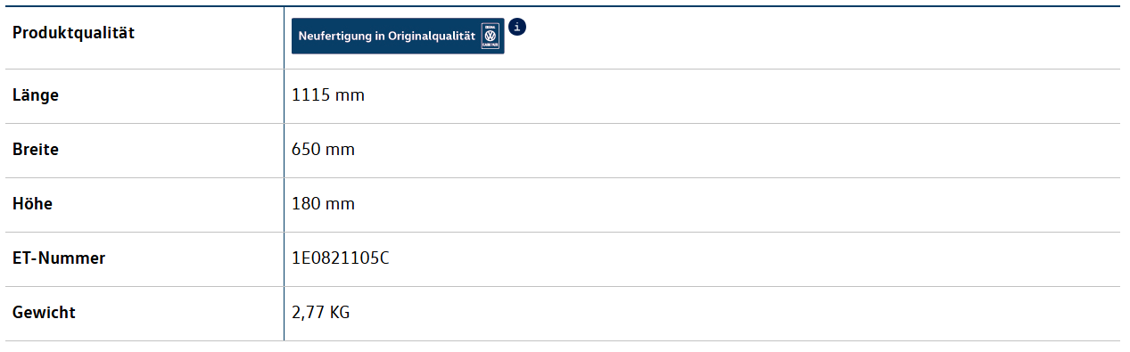 In 100% Volkswagen Qualität neu produziert auf originalen Werkzeugen.